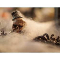 Weave in your Halloween decoration with the spider webs from Europalms - and complete your creepy ambience. Stretched apart as room dividers or stretched over objects - they do not miss their effect. Anyone who has ever accidentally walked into a spider's web will be able to understand the moment of shock.Is the eight-legged resident still nearby and defending his home? Goose bumps are inevitable.With a few simple steps, the spider's web can be brought into the desired shape and size.