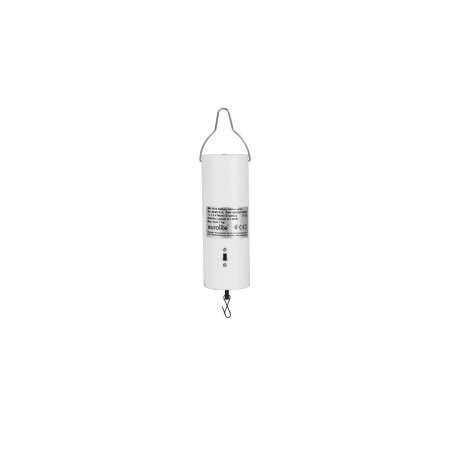 With this battery-operated Eurolite motor you can now let mirror balls rotate in rooms without power sockets too. The motor requires a 1.5 V battery, type Mono D, and can carry a load of up to 1 kg. This equals a mirror ball of approximately 20 cm, safety margin included. The motor also possesses an on/off switch and convenient eyelets for mounting. It works very quietly and rotates the ball steadily slowly with 6-7 rotations per minute.This product is available in the colors black and white.