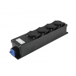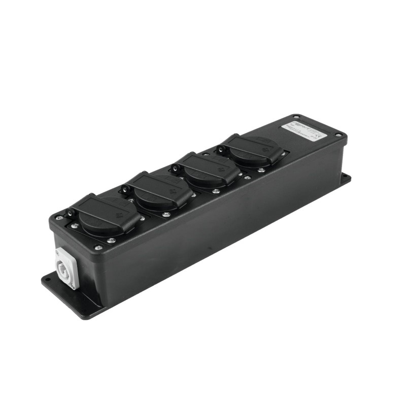 - 1 x Powercon-In, 4 x safety outlet, 1 x Powercon-Out