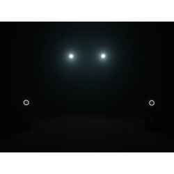 This compact strobe light in a slim-line design is equipped with a total of 98 flicker-free SMD 5030 LEDs and offers you both strobe and blinder effects. The flash frequency is 1-20 flashes per second. The strobe can be operated in stand-alone mode, with a DMX controller or by sound control via the built-in microphone. Delivery includes an IR remote control for convenient operation from a distance. In DMX mode, the 5 ring-shaped LED segments can be controlled individually or in groups. You can choose from two DMX modes with 4 or 9 channels respectively. The fixture has 3-pin DMX connectors as well as an IEC input to connect it to the mains and a feed-through output for daisy-chaining up to 8 units.