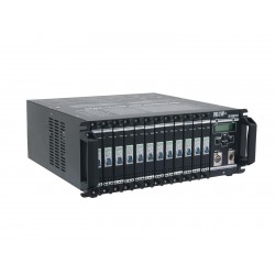 Reliability is always important. Especially at professional events the breakdown of any part of the equipment cannot be accepted. The DPMX-1216 dimmer pack series is the right answer here because it plays it safe: this universal output stage has an automatic circuit breaker on every channel, so single failures can be corrected without causing a complete blackout. Another benefit are the different outputs. Pole connector, safety plug, CEE or multipin: the DPMX-1216 19" serves really any kind.