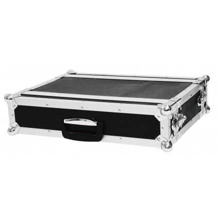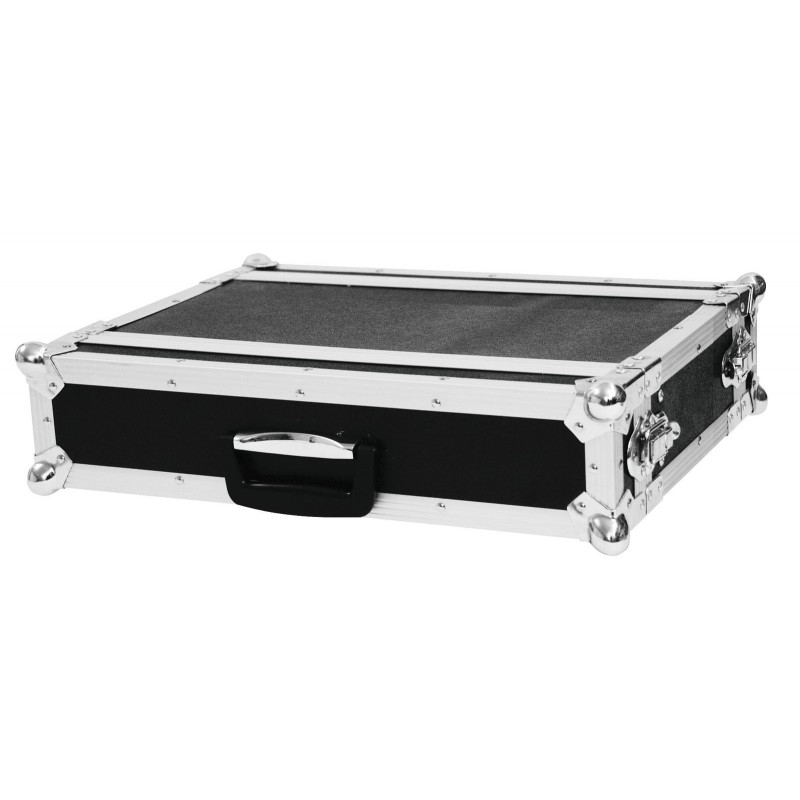 Flightcase for 483 mm units (19")Transport your 483 mm control and effect units (19") easily and safely with the ROADINGER effect rack CO DD. Two removable lids (double-door version), four large, steel-reinforced rubber feet and built-in rack rails make handling with the flightcase easy and comfortable.Multi-layered glued wood, the stable aluminium profile frame with rounded corners and three-legged, medium-sized steel ball corners give the case stability.The flight case is equipped with four snap locks with eyelets for locking, built-in rack rails and a case handle. The maximum load is 20 kg.