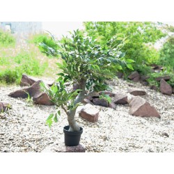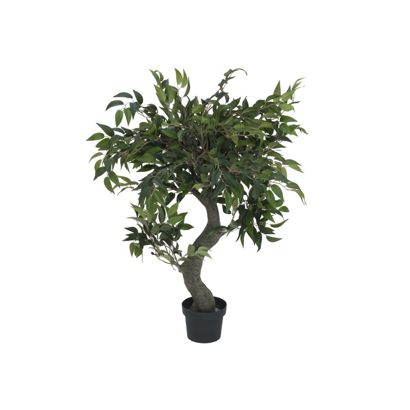 The birch fig, also called "Ficus Benjamina", is a popular indoor plant. Since the care of the natural model is not entirely unproblematic, Europalms offers a good alternative with the Ficus forest tree: The artificial tree will certainly not resent a change of location or difficult lighting conditions. Both its naturally structured crown and the small side shoots consist of numerous branches with pointed oval leaves made of textile. The curved trunk is made of plastic.The artificial ficus tree has a total height of approx. 80 cm and is supplied in a black gardener's pot, which gives the plant a stable stand when placed in a cachepot.