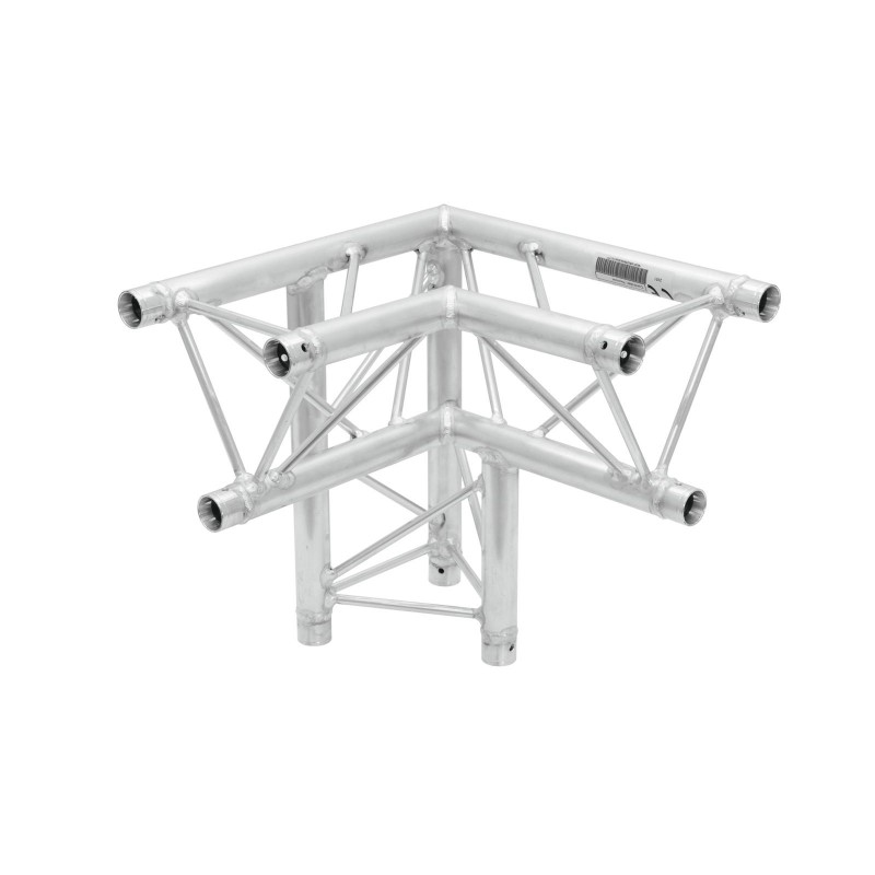 DECOLOCK DQ3 3-point truss systemDECOLOCK DQ3 is a 3-point truss system made of aluminum. The individual elements are connected via three cones, pivots and pins.The advantage of the conical connection system is that the cones completely fit into the main chords so that highest load capacity is guaranteed. The Quick-Lock system enables fast, efficient and highly aesthetic assembly when the truss constructions are frequently assembled and dismantled.The three main chords are made of 35 mm aluminum tube with 2 mm wall thickness and offer sufficient strength at a low weight. The braces have a diameter of 10 mm with 2 mm wall thickness and provide the system with a decorative appearance.With DECOLOCK, you can realize compact installations with low self weight, e. g. for shop displays, shop decorations, exhibitions, interior design, fair booths, discotheques and theatres.DECOLOCK is primarily designed for decorative installations and can be used for permanent or temporary installations due to its highly aestethic appearance. The advantages of this system are the compact construction with 220 and 195 mm outer dimensions, low weight, optimum strength along with easy and quick assembly.The documentation of this truss system is closely related to the Codes of Practice SQ P1 - Truss Systems published by the VPLT/PLASA. The load table as calculation base can be downloaded from the Internet before buying the product!Please note: this truss system must never be combined with other systems!