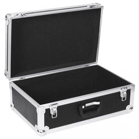 Flightcase Tour ProThe ROADINGER Universal Case Tour Pro is a versatile and very stable tour case. The sides of the case are made of multilayered glued wood, the interior and the lid are lined with black foam upholstery. The necessary stability is provided by the aluminum profile frame with rounded corners and the three-legged, medium-sized steel balls. You can lock the case with two lockable snap locks.With the robust folding handle you always have your universal case safely under control.The maximum load is 25 kg.