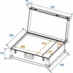 Flightcase with flexible padded interior, accessory compartment and 680 x 475 x 140 mm (inner dimensions)