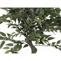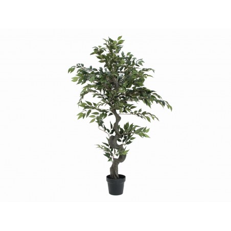 The birch fig, also called "Ficus Benjamina", is a popular indoor plant. Since the care of the natural model is not entirely unproblematic, Europalms offers a good alternative with the Ficus forest tree: The artificial tree will certainly not resent a change of location or difficult lighting conditions. Both its naturally structured crown and the small side shoots consist of numerous branches with pointed oval leaves made of textile. The curved trunk is made of plastic.The artificial ficus tree has a total height of approx. 110 cm and is supplied in a black gardener's pot, which gives the plant a stable stand when placed in a cachepot.