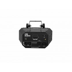 The LED D-2000 Beam Effect by Eurolite comes equipped with 5 high-performance 10-watt LEDs in the colors red, green, blue, amber and white creating dynamic strobe and derby effects. The LED D-2000 works with 3 preset programs. In the automatic mode, the preset light programs are played fully automatically without any further adjustments on your part. Alternatively, you can choose the sound-controlled mode via the built-in microphone with adjustable sensitivity. You can also operate multiple devices in sync using the master/slave mode. Apart from the preset programs, the LED D-2000 can also be controlled via 5 or 9 DMX channels. For the addressing and settings (such as the color selection for 15 mixed colors, color changes, fade effects or dimmer effects) you can either use the 4-digit LED display and operating buttons on the rear of the device or the supplied IR remote control. What is more, the LED D-2000 is compatible with QuickDMX, the wireless DMX system by Eurolite. A phantom-powered USB port for a wireless transmission of the DMX signal through a QuickDMX receiver can be found on the rear of the device.