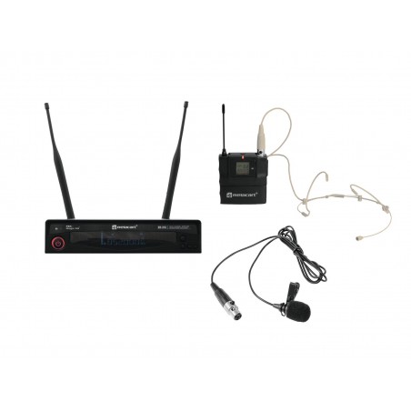 Multifrequency wireless receiver with bodypack, headset and lavalier microphone