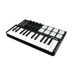 USB MIDI controller with 25 buttons, 8 pads, 4 controls and faders each, for music creators, producers and DJs