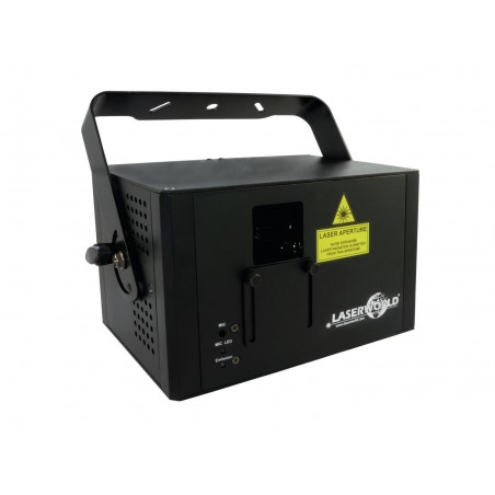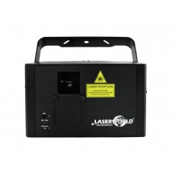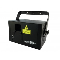 The Laserworld CS-1000RGB show laser projector comes with a completely new designed compact housing, which is light weight and has a stable bracket. The bracket allows for different mounting positions: a hanging as well as a standing installation is possible - ideal for mobile DJs and temporary laser shows, but also for fixed installations at a truss or at the ceiling.The Laserworld CS-1000RGB is a full color RGB laser system with a total output power of up to 1000 mW and a minimum output power of 800 mW. The red laser source at 650 nm has an output power of 200 mW, the green DPSS at 532 nm of 70 mW and the royal-blue laser source at a wavelength of 445 nm has an output power of 530 mW. The laser sources ensure billiant colors and powerful laser beams. The projector has good beam specifications with a beam diameter of about 3 mm and beam divergence of 2.0 mrad. The galvo system has a scan speed of up to 30 kpps.Pattern size and the sensitivity of the microphone can be set by two rotary buttons on the rear side of the housing. Through DMX, in the automatic mode as well as in the sound-to-light mode about 200 preset patterns, like waves, tunnels, circles etc. can be projected in different colors and in various speed. If the automatic mode is active, the pre-programmed patterns run without assistance and in the music mode, the laser system projects according to the sound.Next to the modi mentioned above, this laser projector provides a master-slave-mode. Show lasers of the same series (slave projectors), connected via DMX to a main projector (master projector) project the same patterns like the master projector.The Laserworld CS-1000RGB is computer controllable through a professional ILDA interface. Thus own or pre-programmed lasershows, logos, texts or own graphics and animations can be shown in combination with a laser control software.There are safety features like a key switch, an interlock interface and an on-off switch.The Laserworld CS-1000RGB is ideal for semi-professional applications and is perfectly suitable in bars, medium sized clubs and discos as well as for rental companies, mobile DJs, private use and in any other party location.