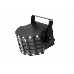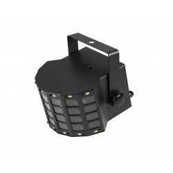 With its extra-bright beams in three different colors and white, this hybrid beam effect cuts even through the dense air in a club, home party room etc. A semicircular arrangement of RGB LEDs and white LEDs for strobe effects allows for light shows of any kind which can be easily coordinated via the four operating buttons: One of three preset programs can be played either in automatic or sound-controlled mode via the built-in microphone. If you choose the latter, the rhythm of the music sets the tone for the color changes - this works for both fast and slow genres.Since the Mini D-6 Hybrid is a particularly light and small spot, you can easily take it with you and use the mounting bracket to install it almost everywhere you like. Of course, the power cord and plug are included so you get everything you need for your color explosion in one compact set!
