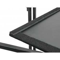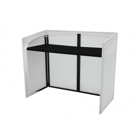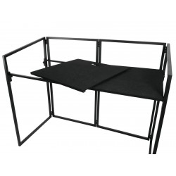 A must for mobile DJsHere you get a stable DJ stand, which you can set up in no time at all without tools and transport very easily. The Mobile DJ Stand helps you to prepare your performance neatly and professionally in no time at all. Quick setup and professional lookThe DJ stand can be set up by yourself within a few minutes without any tools. You cover the stable folding frame with the included cover. This not only makes the wiring disappear, but also provides a professional look. Illuminate the cover's stretch fabric from the inside, for example with two small LED spots. Sturdy and easy to transportThe folding frames of the DJ stand are made of robust steel tubes. They have a weight of 22 kg, but can carry 50 kg: a weight that most DJ setups never reach and which shows how stable the structure is. Your equipment stands on the firmly anchored wooden plate, which is covered with non-slip felt. The DJ stand is delivered folded up in a bag. So you can transport it comfortably and space-saving.