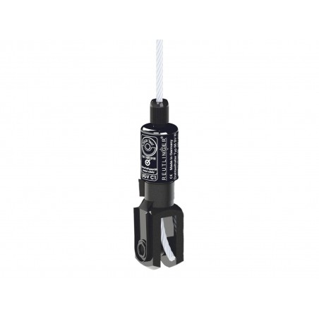 Certified cable holderCable holders can be used for easily suspending static workloads on attachment ropes. No tools are required. The load can be hung at any position and height and easily be re-positioned.The REUTLINGER cable holders are the only system certified by two independant certification bodies. This cable holder boasts of a TUV certificate and a German BGV C1 certificate and can be used in entertainment technology.TÜV GS and BGV C1 - double-tested and double-certifiedREUTLINGER® grippers type 50 SV III, type 66 SV III and type 80 SV III are not only certified as safe (GS) by the German TÜV, they have also been licensed for use within the scope of standard DGUV Regulation 17 (BGV C1).The DGUV Test certificate authorises these grippers for use within the scope of the accident prevention regulations issued by the German employers' liability insurance associations in respect of staging and production facilities.The test seal of the DGUV is conferred only after extensive examining of all load applications. Further testing simulated most anticipated mis-applications.REUTLINGER® gripper ranges 50, 66 and 80 are the only load-bearing devices certified by the DGUV for use in mobile production facilities.