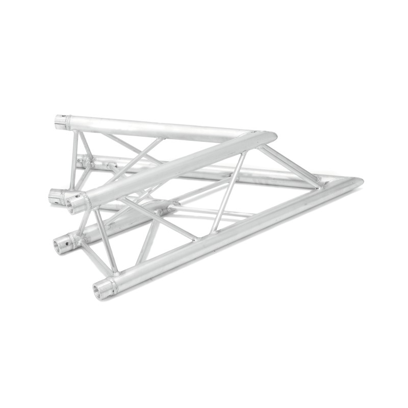 TRILOCK 6082 3-point truss systemTRILOCK 6082 is a 3-point truss system made of aluminum. The individual elements are connected via three cones, pivots and pins. TRILOCK 6082 is made of EN-AW 6082 T6 (AlMgSi1 T6) alloy for even higher loads. The advantage of the conical connection system is that the cones completely fit into the main chords so that highest load capacity is guaranteed. The Quick-Lock system enables fast, efficient and highly aesthetic assembly when the truss constructions are frequently assembled and dismantled. The three main chords are made of 50 mm aluminum tube with 2 mm wall thickness and offer a good relation between strength and weight. The braces have a diameter of 16 mm with 2 mm wall thickness and leave enough space for installing couplers, hooks and clamps. With 290 and 257 mm outer dimensions, TRILOCK QTTR is a stable truss system for higher loads and extended durability. This system is mainly designed for intense use in stage installations, fair installations, event installations but also for permanent installations in discotheques and theatres. Its polished surface makes this universal system a real eyecatcher. Due to its wide range of standard system lengths, corners, circles and accessory, this system is highly versatile and offers unlimited design possibilities. The production of this truss system is TUV-monitored. The load table as calculation base can be downloaded from the Internet before buying the product!Please note: this truss system must never be combined with other systems!