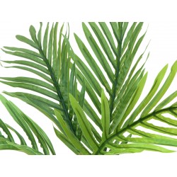The Areca palm branch of Europalms makes a rather discreet impression at first glance, but is a true "all-rounder". The four lifelike plastic feathers are flexible and have leaves made of waterproof Tarpaulin - this allows them to be placed in a protected outdoor area. Whether as a small single plant, addition to an existing arrangement, or as table decoration. Design your jungle decoration according to your own wishes. Since the plant is supplied with a practical stick, it is also ideal when there is little space available.