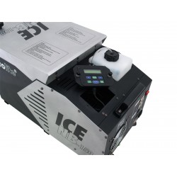 Simple floor fogger with 1500 W, remote control, ice cube coolingThe EUROLITE NB-150 ICE ground fogger produces large quantities of low-lying ground fog. It is ideal for stages and discotheques. The NB-150 ICE can score points with its short warm-up time and low fluid consumption. It works with conventional fog fluid and ice cube cooling. To obtain 25 minutes of continuous fog at full output, you need to fill the ground fogger with four kilograms of ice cubes. You can easily empty and clean the NB-150 ICE via the drain. The tank is removable. The fog effect is triggered by DMX or via the integrated control module with LCD display. Alternatively, you can easily control the ground fogger with the wired remote control.You can easily adjust the temperature with the thermoswitch. Intervals, duration and fog quantity can also be variably adjusted according to your requirements. The sturdy metal housing is equipped with carrying handles and transport castors.