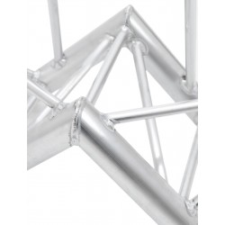 QUADLOCK 6082 4-point truss systemQUADLOCK 6082 is a 4-point truss system made of aluminum. The individual elements are connected via four cones, pivots and pins. QUADLOCK 6082 is made of EN-AW 6082 T6 (AlMgSi1 T6) alloy for even higher loads.The advantage of the conical connection system is that the cones completely fit into the main chords so that highest load capacity is guaranteed. The Quick-Lock system enables fast, efficient and highly aesthetic assembly when the truss constructions are frequently assembled and dismantled.The four main chords are made of 50 mm aluminum tube with 2 mm wall thickness and offer a good relation between strength and weight. The braces have a diameter of 16 mm with 2 mm wall thickness and leave enough space for installing couplers, hooks and clamps.With 290 mm outer dimensions, QUADLOCK QQTR is a stable truss system for higher loads and extended durability. This system is mainly designed for intense use in stage installations, fair installations, event installations but also for permanent installations in discotheques and theatres.Its polished surface makes this universal system a real eyecatcher. Due to its wide range of standard system lengths, corners and accessory, this system is highly versatile and offers unlimited design possibilities.The production of this truss system is TUV-monitored. The load table as calculation base can be downloaded from the Internet before buying the product!Please note: this truss system must never be combined with other systems!