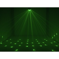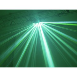 Beams exit from every lens, perform circular movements and change the direction of movement with every bass-beat