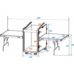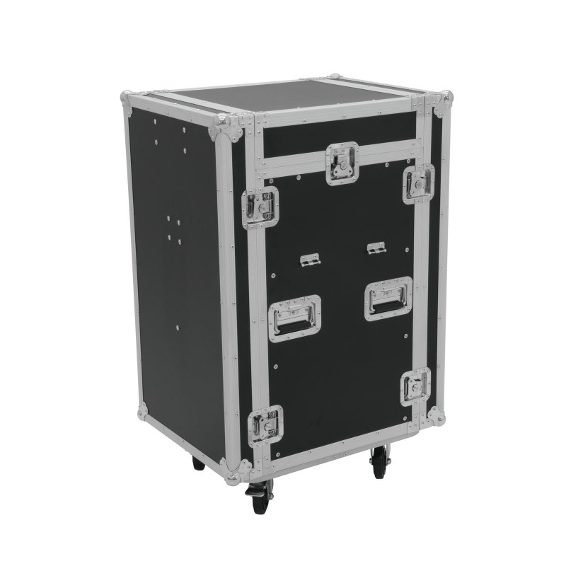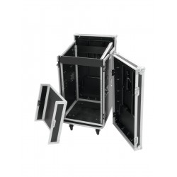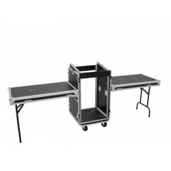 Professional solution for a complete DJ setput; this heavy-duty case accommodates your PA, a double CD player, a 483 mm mixer (19") and turntables and can be assembled and disassembled without much effort