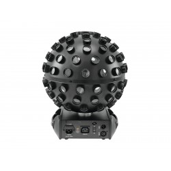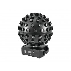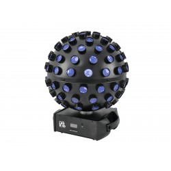 Romantic light show in beautiful RGBAW colors plus UV light - this LED disco ball makes it possible!The LED B-40 HCL by Eurolite is a fascinating mirror ball simulator fitted with five powerful 12-watt hex-color LEDs projecting colorful beams and a precision motor that creates a romantic atmosphere at slow rotation speed. Thanks to 6-color mixing particularly beautiful colors are possible: In addition to red, green and blue, white and amber provide great pastel and yellow tones. Adding UV to the mix makes for unique color moods.Various control optionsThe LED B-40 HCL offers a direct selection for 25 preset colors and comes with 4 show programs selectable in automatic or sound-controlled mode. It can be operated in master, slave and stand-alone modes or via DMX. A clear display even allows you to easily set a color and rotation speed without any controller. Everywhere in useOf course, the LED B-40 HCL is delivered ready to use with plug and power cord together with a bracket for truss mounting. Placing the disco ball on a stand as a centerpiece also yields great effects. Thanks to its modern technology and straightforward handling the LED B-40 HCL is an ideal choice for clubs, bars, discos and mobile applications of any kind.