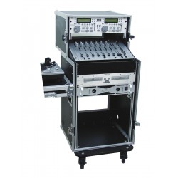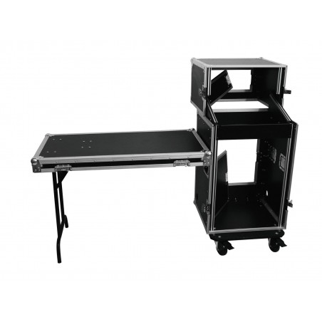Professional solution for a complete DJ setput; this heavy-duty case accommodates your PA, a double CD player and a 483 mm mixer (19") and two turntables and can be assembled and disassembled without much effort
