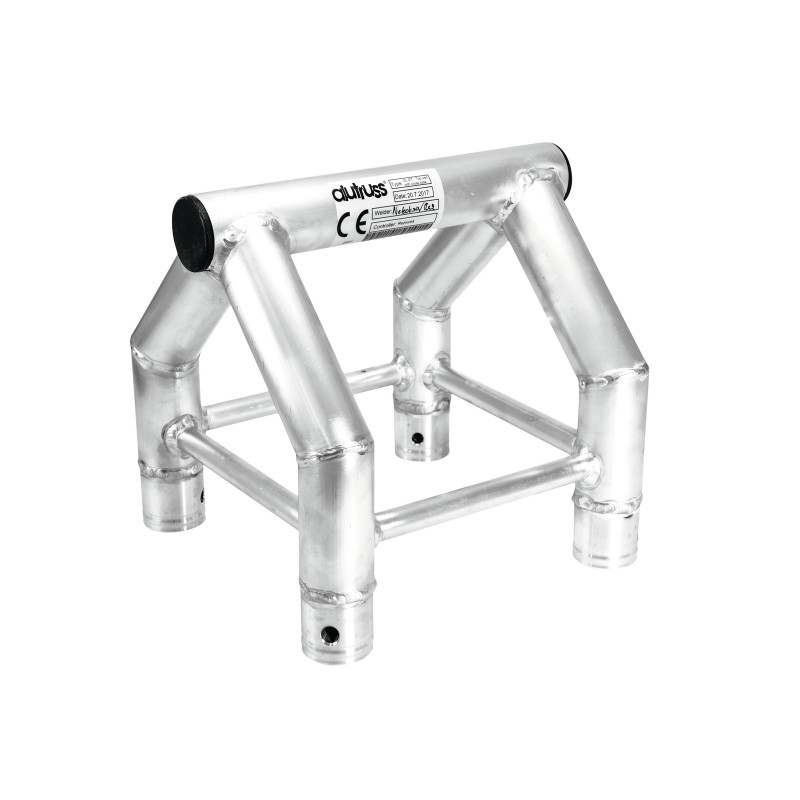 QUADLOCK QL-ET34 4-point truss systemQUADLOCK QL-ET34 is a 4-point truss system made of aluminum. The individual elements are connected via four cones, pivots and pins. QUADLOCK QL-ET34 is made of EN-AW 6082 T6 (AlMgSi1 T6) alloy for even higher loads.The advantage of the conical connection system is that the cones completely fit into the main chords so that highest load capacity is guaranteed. The Quick-Lock system enables fast, efficient and highly aesthetic assembly when the truss constructions are frequently assembled and dismantled.The four main chords are made of 50 mm aluminum tube with 2 mm wall thickness and offer a good relation between strength and weight. The braces have a diameter of 20 mm with 2 mm wall thickness and provide stability for this truss system.With 290 mm outer dimensions, QUADLOCK QL-ET34 is a stable truss system for higher loads and extended durability. This system is mainly designed for intense use in stage installations, fair installations, event installations but also for permanent installations in discotheques and theatres.Its polished surface makes this universal system a real eyecatcher. Due to its wide range of standard system lengths, corners and accessory, this system is highly versatile and offers unlimited design possibilities.The production of this truss system is TUV-monitored. The load table as calculation base can be downloaded from the Internet before buying the product! ALUTRUSS elements are made in Europe and welded by specially trained welders certified by the German SLV association.Please note: this truss system must never be combined with other systems!