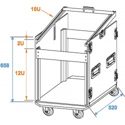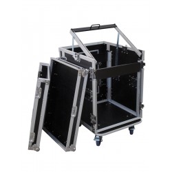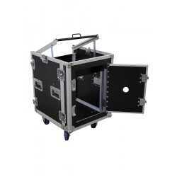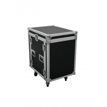 Professional solution for a complete DJ setput: this heavy-duty case accommodates your PA, a double CD player, a 19" mixer, effect units, and further 19" units