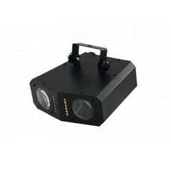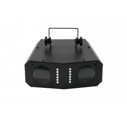The LED DMF-2 Hybrid Flower Effect by Eurolite is a high-performance derby matrix light effect with 3 preset programs that can be played either fully automatically in automatic mode or sound-controlled via the integrated microphone. The running speed can be adjusted in 9 levels.The fixture comes equipped with a total 54 LEDs that generate impressive flower effects in vibrant RGB colors. 12 additional white LEDs produce rapid strobe effects.The LED DMF-2 comes in a sturdy all-metal enclosure with convection cooling that sports an adjustable bracket and safety eye for secure mounting. It also has 4 operating buttons for power on/off, mode and program selection as well as speed regulation. This lighting effect is perfectly suitable for portable use in home party rooms and smaller discos!