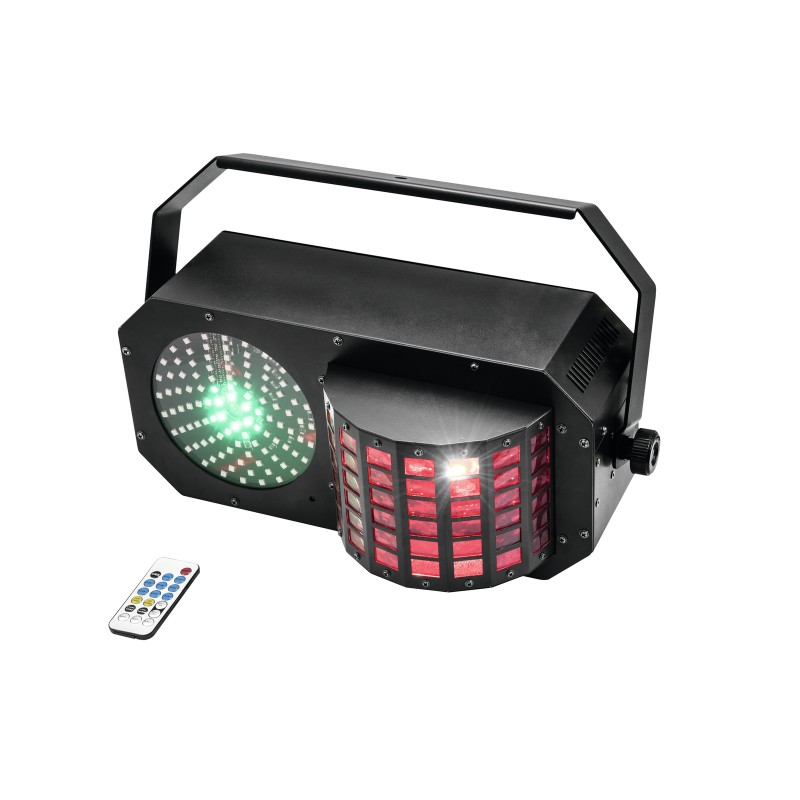 | Control: | Stand-alone; DMX; IR remote control; Sound to light via Microphone; Master/slave function; Light J Software; EUROLITE LED PC-Control 512 software |