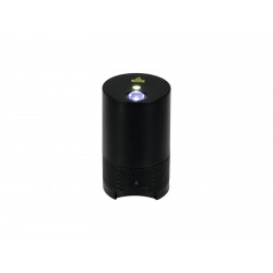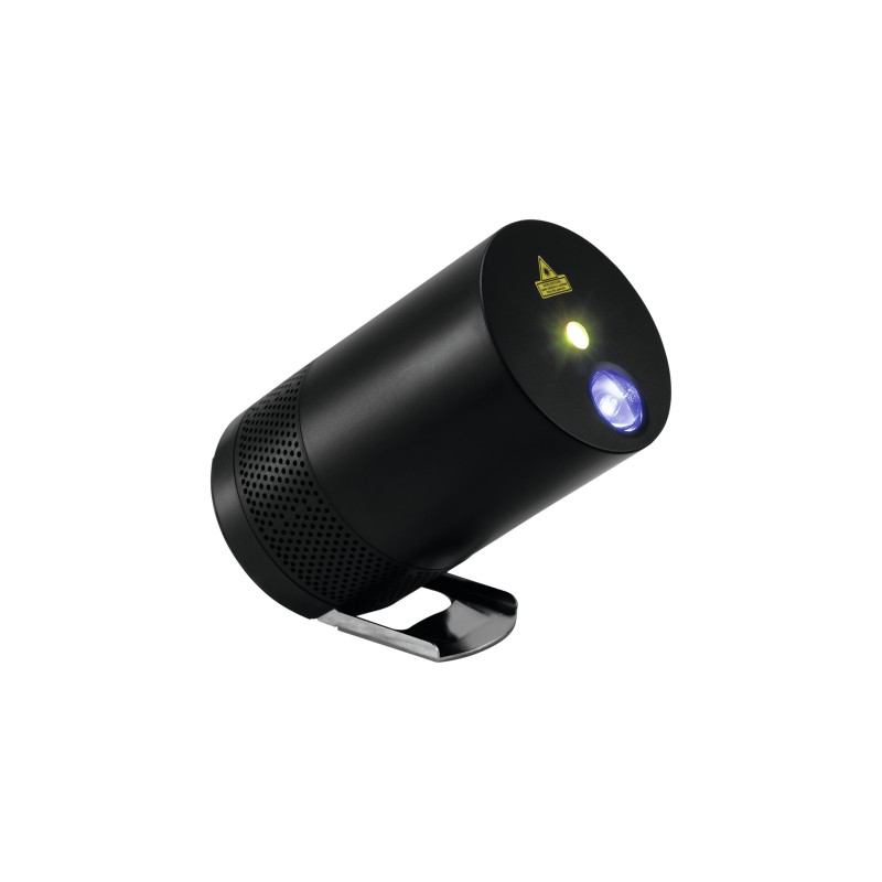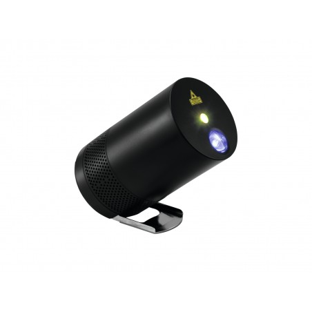 A portable Bluetooth speaker and a dual light effect combined in one device - this perfectly describes the compact LightBeat 1 by Eurolite. Speakers with small light effects may be nothing special these days but a speaker with both a laser and a blue blurred mini water effect certainly is.The LightBeat1 offers you a 5-watt loudspeaker and a battery life of 4 hours which makes it the perfect choice for background music or illuminating your house during a garden party. You can also use it to bring a bit of color to your hobby room or your kid's bedroom.The laser is strong enough to project sharp red and green dots onto the walls and ceiling yet it is not subject to an acceptance test (laser class 2M) and can be used by anyone in all kinds of rooms with no concerns.